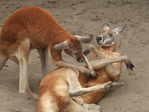 囲いを延々と殴り続ける3人、40分もかかってやっと